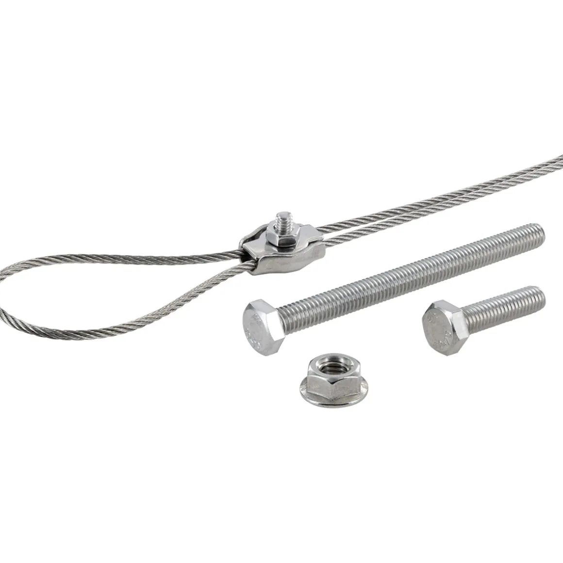 - Lieferumfang umfasst vier Halterungen sowie Montagematerial inklusive Stahlseilsicherungen