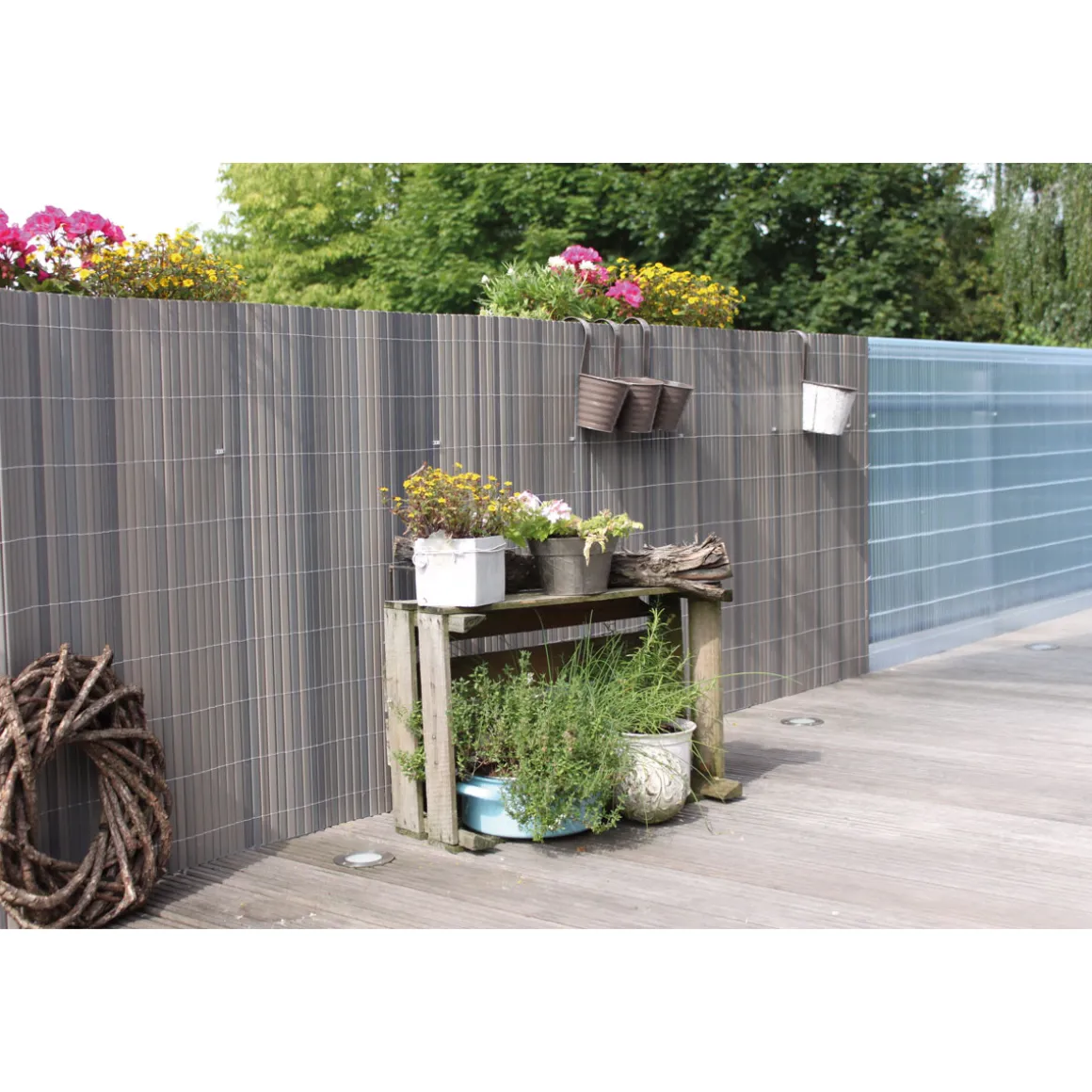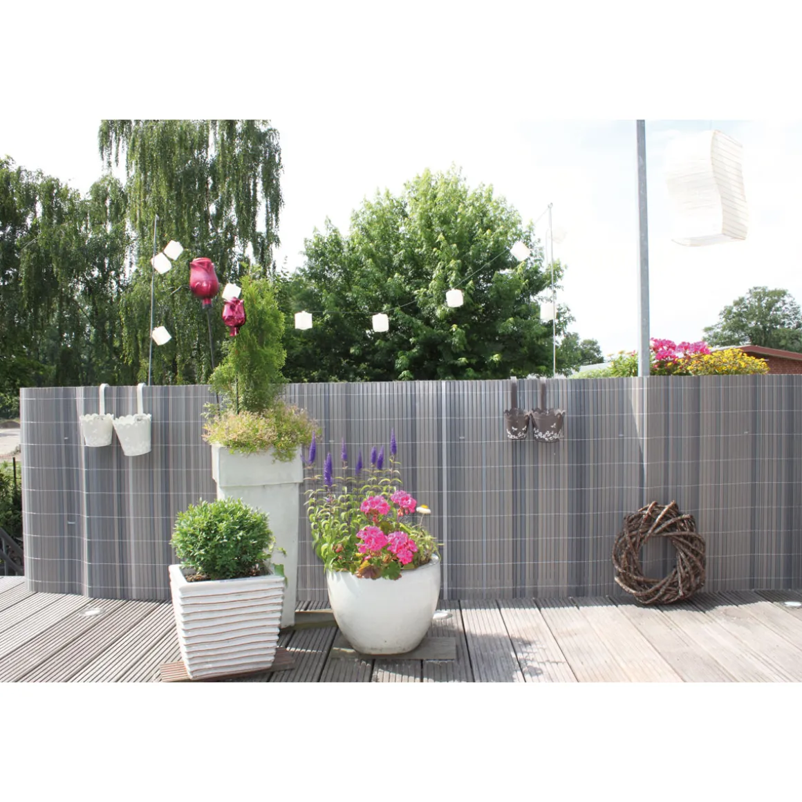 Mit dem Sichtschutz Rügen in lärche-grau schaffen Sie eine gemütliche Atmosphäre auf Balkon, Terrasse oder im Garten. Der hochwertige Kunststoff ist recycelt und UV- sowie witterungsbeständig.