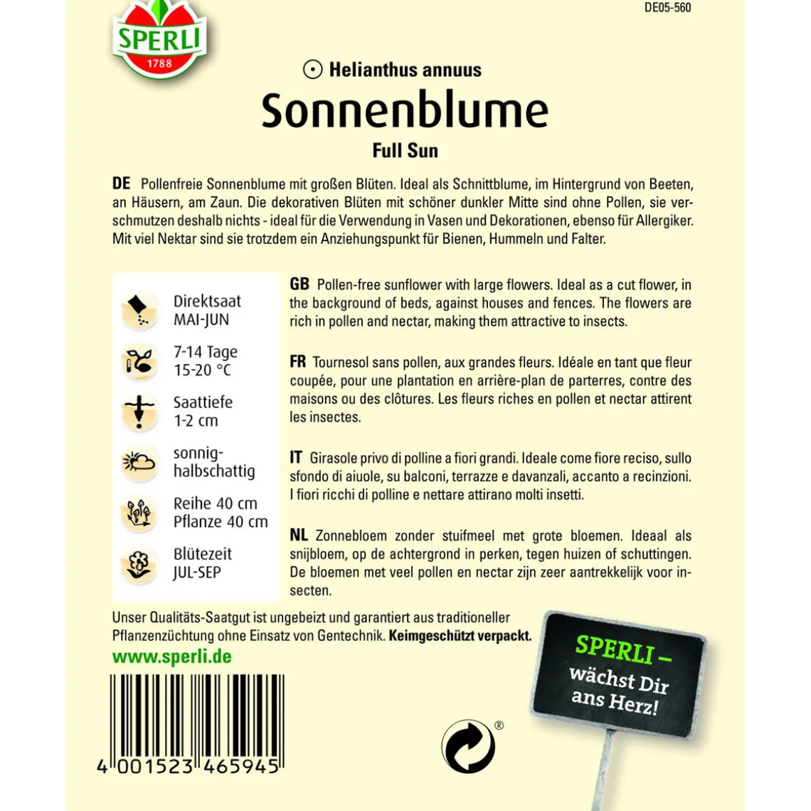 - Botanischer Name: Helianthus annuus