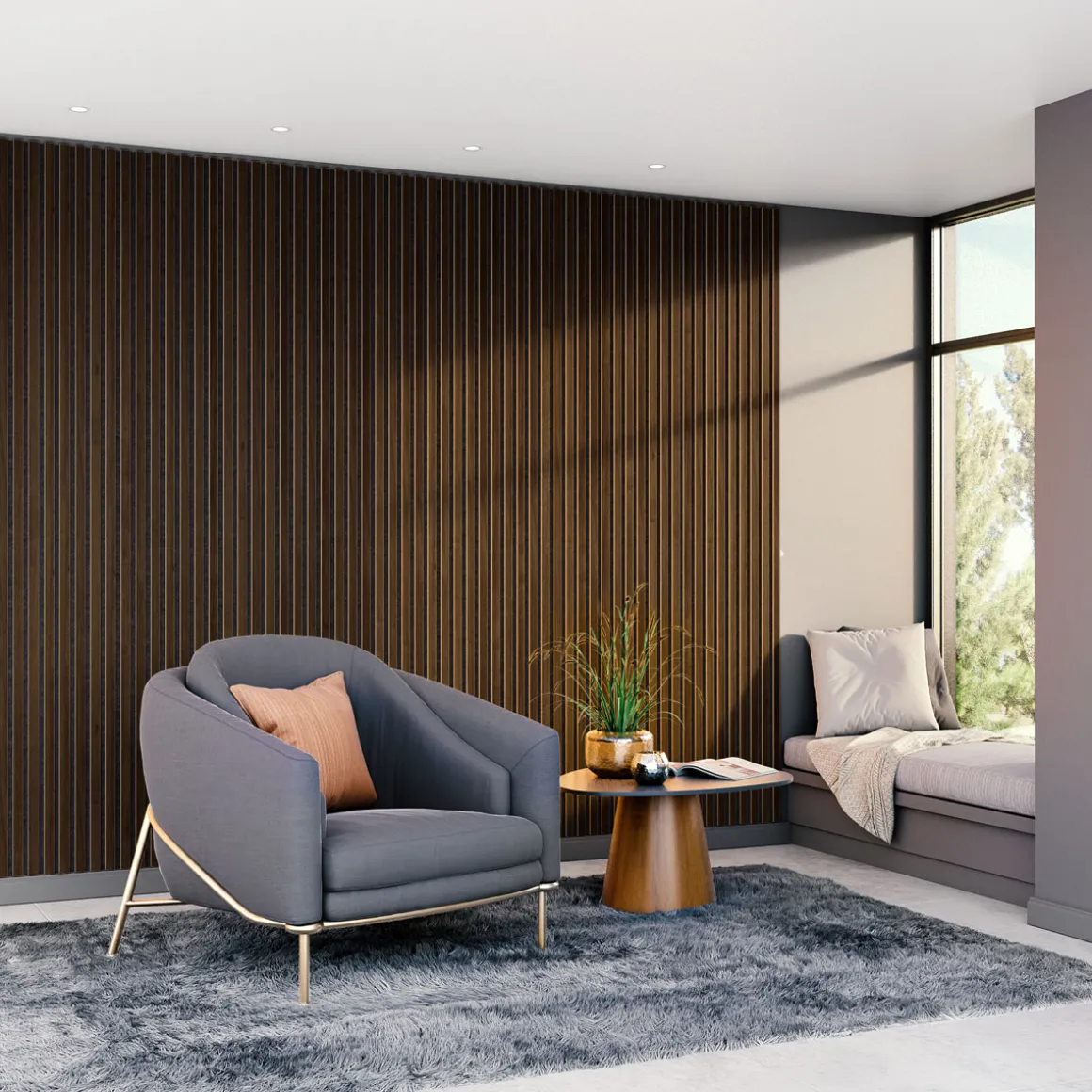Holzfurniere auf Filz-Akustikträger, Stärke 8 mm, LxB 250×30 cm, Stärke 11 mm, hochwertige, gebürstete Echtholzoberfläche, schallabsorbierende Wirkung.