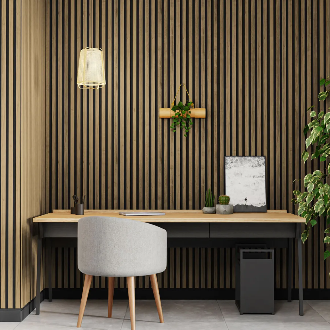 Holzfurniere auf Filz-Akustikträger, Stärke 8 mm, LxB 250x30 cm, Stärke 11 mm, hochwertige, gebürstete Echtholzoberfläche, schallabsorbierende Wirkung.
