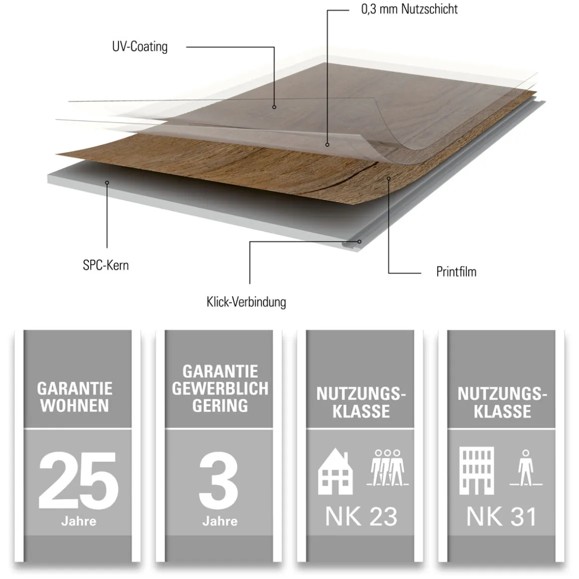 Specht Vinylboden Vinyl SPC Classic Eiche Alberta 1220 x 182 x 3,8 mm