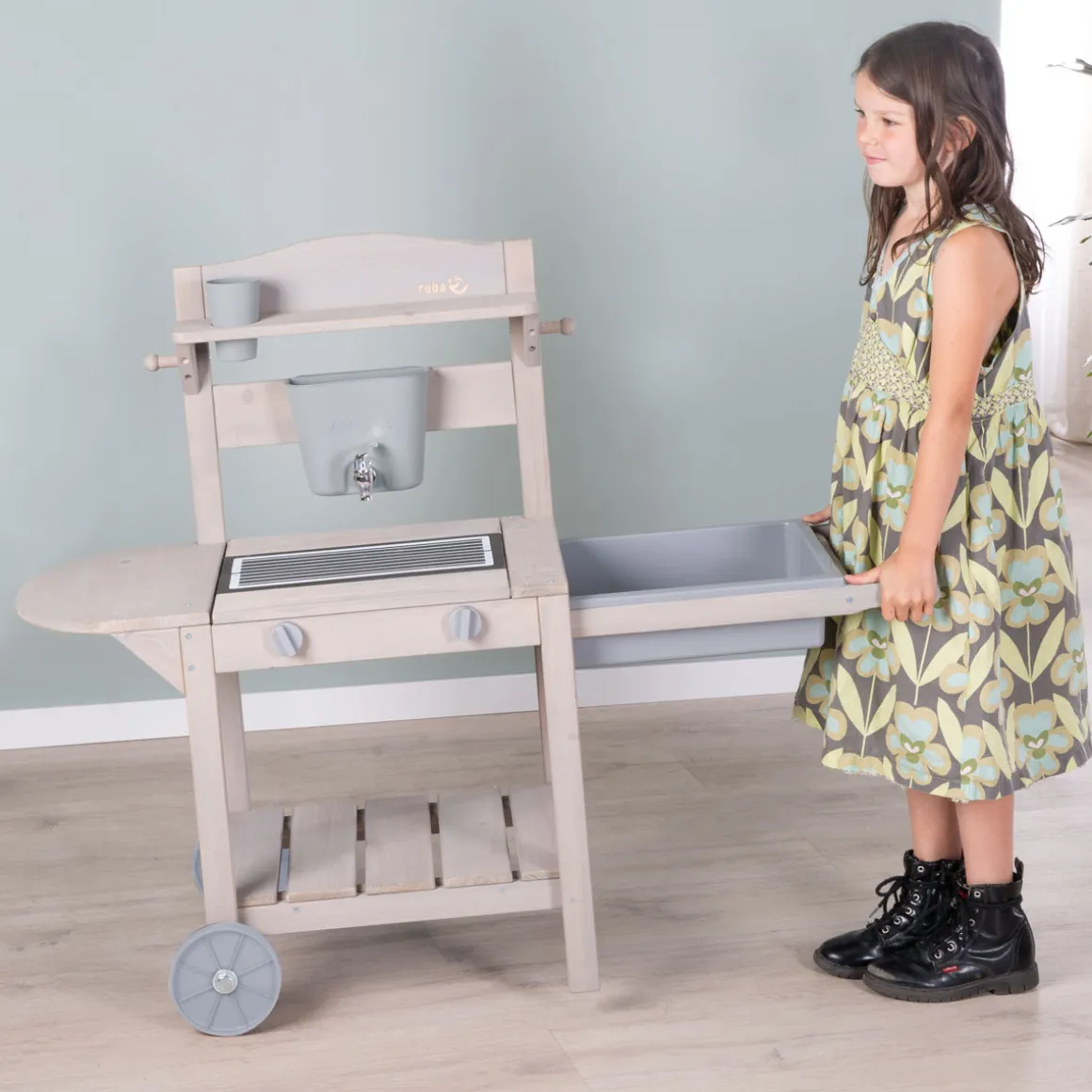 Warum warten? Mit der Spiel- und Matschküche holen Sie sich nicht nur ein hochwertiges Produkt ins Haus (oder besser gesagt: in den Garten), sondern auch strahlende Kinderaugen! Diese mobile Küche bietet endlose Möglichkeiten zum Spielen, Lernen und Entdecken. Lassen Sie Ihre Kleinen kreativ werden – ob beim Matschen mit Wasser oder beim Kochen mit Sandkreationen. Bestellen Sie jetzt beiIhre eigene Spiel- und Matschküche Mobil 115x89x41,5 cm aus robustem Holzmaterial in modernem Grau!