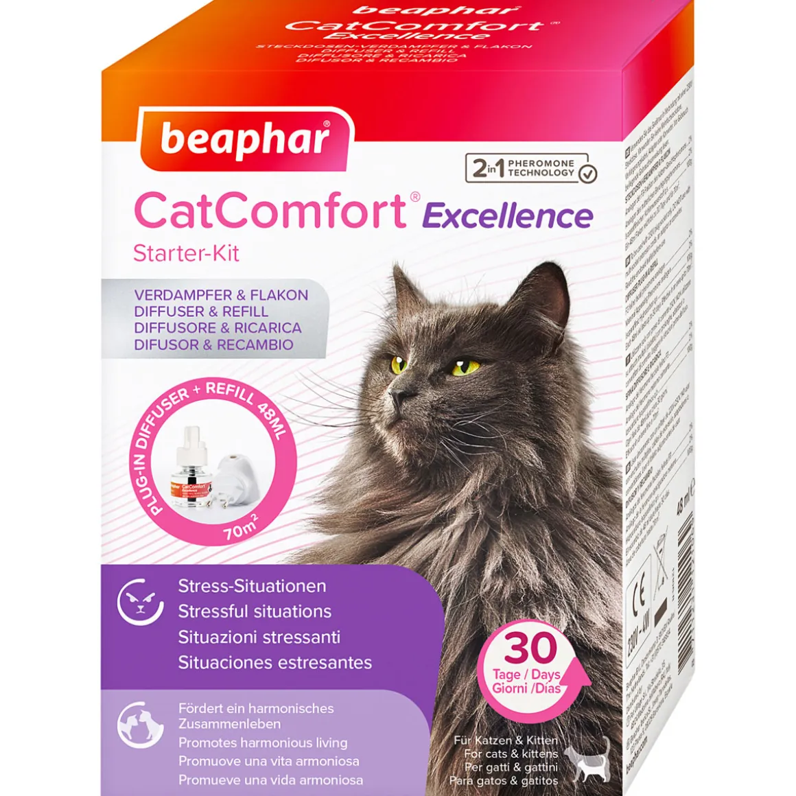 Das Starter-Kit CatComfort ist die ideale Lösung für stressige Situationen und fördert ein harmonisches Zusammenleben mit Ihrer Katze. Mit Pheromonen angereichert, hilft es in herausfordernden Situationen wie Gewittern oder Umzügen sowie bei Konfrontationen mit neuen Erfahrungen.