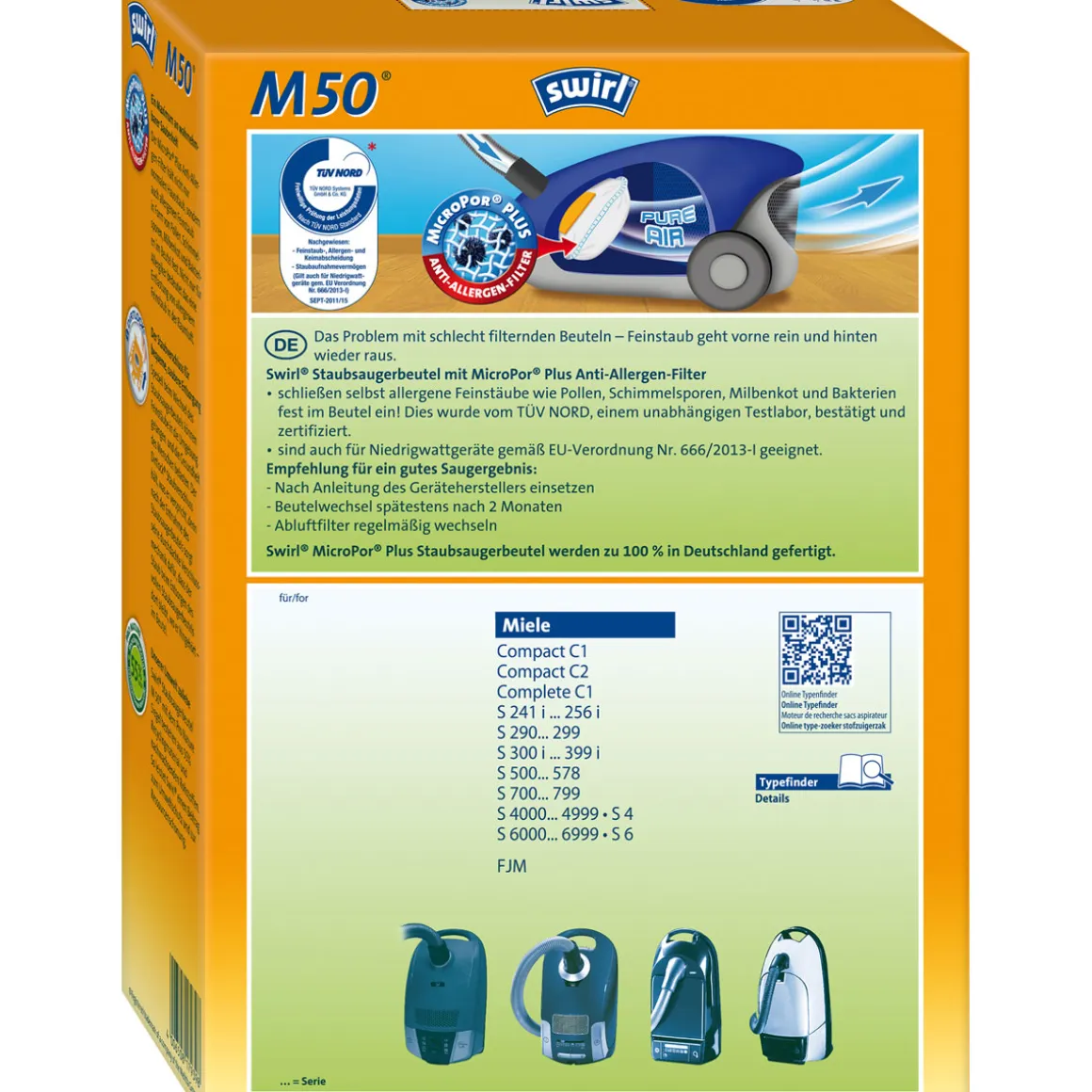 Der SWIRL Staubsauger-Beutel M 50 EcoPor eignet sich perfekt für alleKunden, die Wert auf eine gründliche Reinigung legen und dabei auch die Umwelt schonen möchten. Besonders geeignet ist er für Besitzer von verschiedenen Miele Modellen wie Compact C1, Compact C2 oder Complete C1.