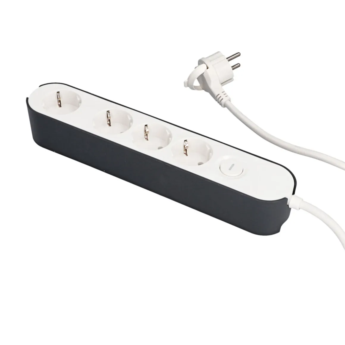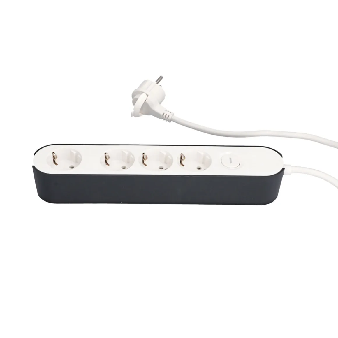 Zuleitung 1,8 m, 95 % recyceltes Rohmaterial, 4 Anschlüsse, mit Flachstecker, mit Ein- und Ausschalter.