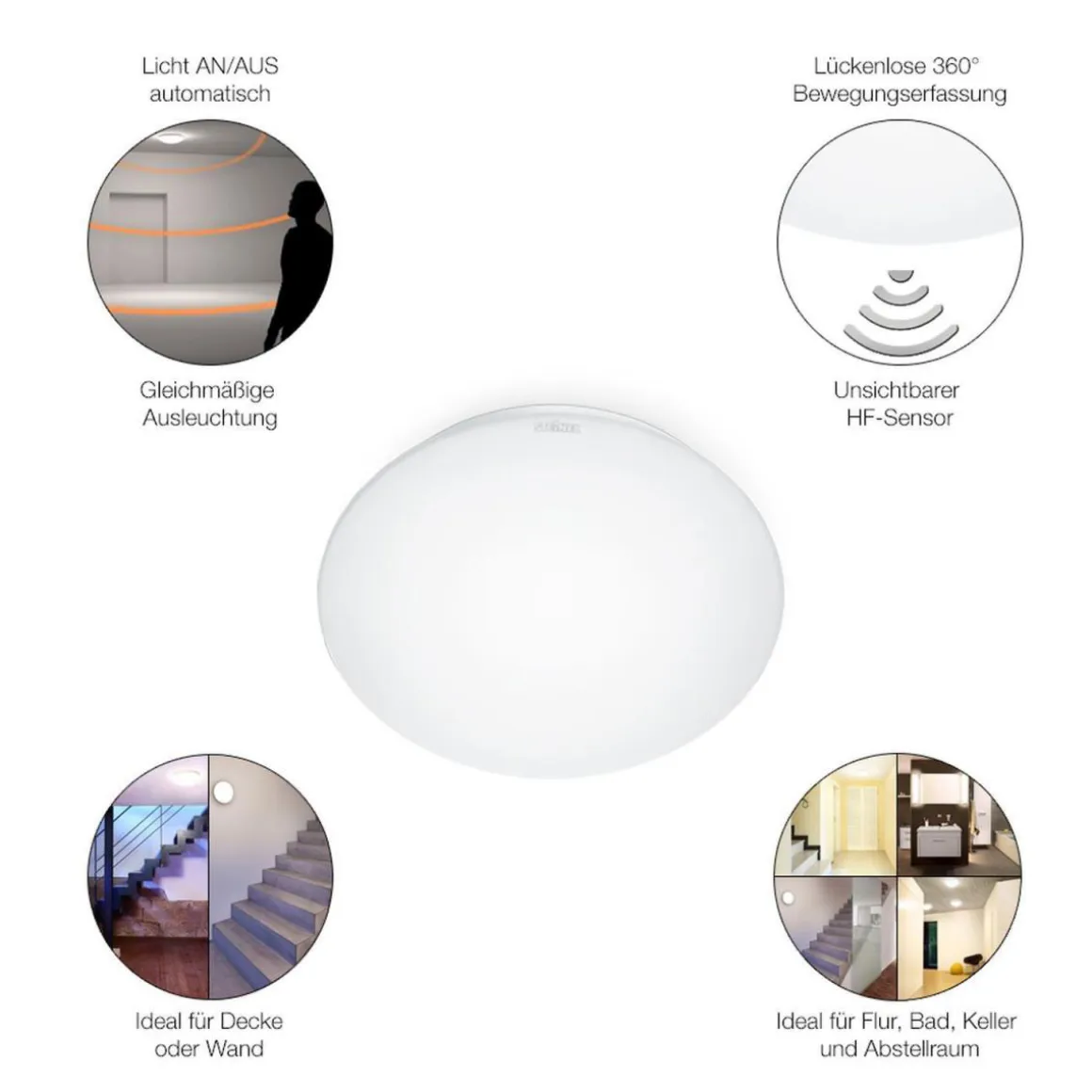 Steinel LED-Sensor-Innenleuchte RS 16 S Glashaube – Moderne Beleuchtung für jeden Raum