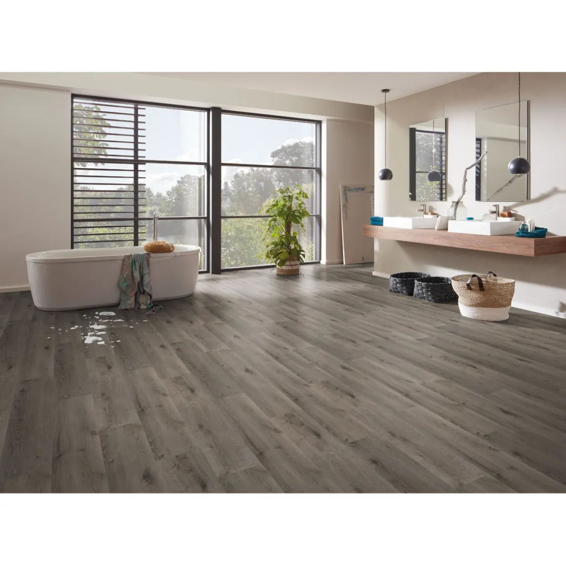 Dieser Bodenbelag ist ideal für Kunden geeignet, die auf der Suche nach einem strapazierfähigen und gleichzeitig stilvollen Bodenbelag für ihren Wohn- oder Feuchtraum sind.