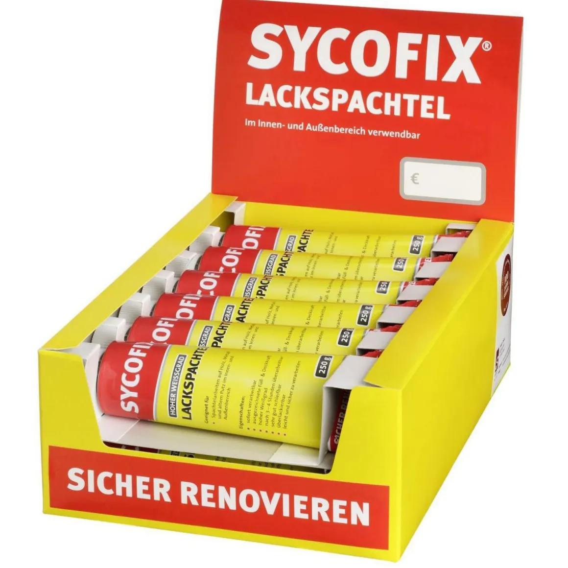 Der Sycofix Lackspachtel eignet sich ideal für alle Heimwerker, die kleine Löcher oder Unebenheiten ausbessern möchten. Auch Profis werden von der schnellen Trocknungszeit und einfachen Handhabung begeistert sein.