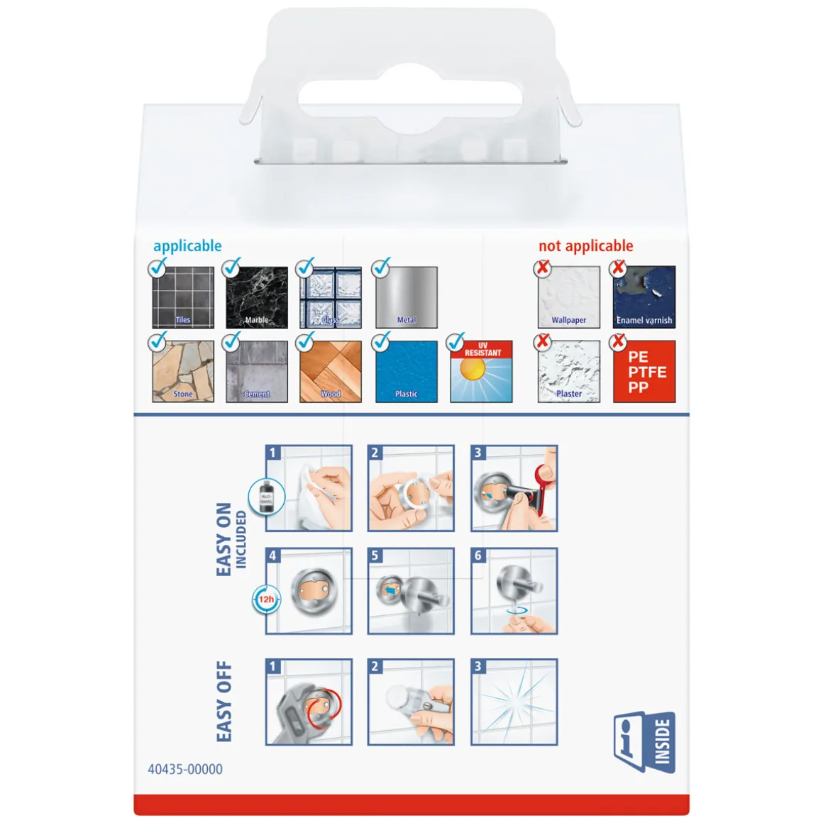 - Hält sicher auf Fliesen, Glas, Metall, Naturstein, Marmor und vielen Kunststoffen