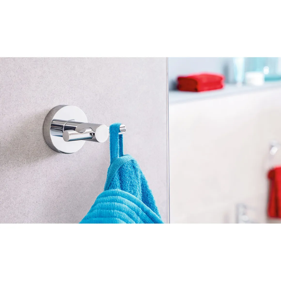 „Sie suchen nach einer praktischen Lösung zum Aufhängen Ihrer Badtextilien? Der Tesa Bandemantelhaken aus der Serie Elegaant wurde speziell entwickelt, um Ihnen den Alltag zu erleichtern. Dank seiner rostfreien Eigenschaften eignet er sich besonders gut für feuchte Umgebungen wie Ihr Badezimmer. Die einfache Klebemontage macht ihn zur perfekten Wahl für alle Heimwerkerinnen und Heimwerker – ganz ohne Werkzeug! Und wenn Sie einmal umziehen sollten? Kein Problem! Der Haken lässt sich rückstandslos entfernen und sogar wiederverwenden. Ideal also nicht nur fürs Eigenheim sondern auch Mietwohnungen.“