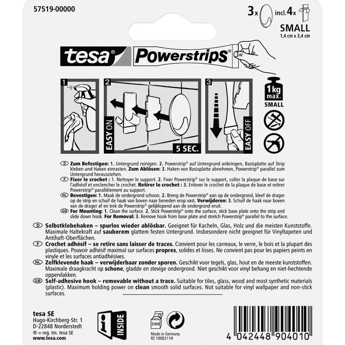 Mit den Tesa Haken Powertstripe Small chrom Oval haben Sie eine stylische und praktische Lösung für Ihre Garderobe gefunden. Die ovalen Haken sind aus hochwertigem Kunststoff gefertigt und in mattem Chrom gehalten. Sie lassen sich einfach anbringen, sind belastbar bis zu 1 kg und dank der tesa Powerstrips-Technologie jederzeit spurlos wieder ablösbar.