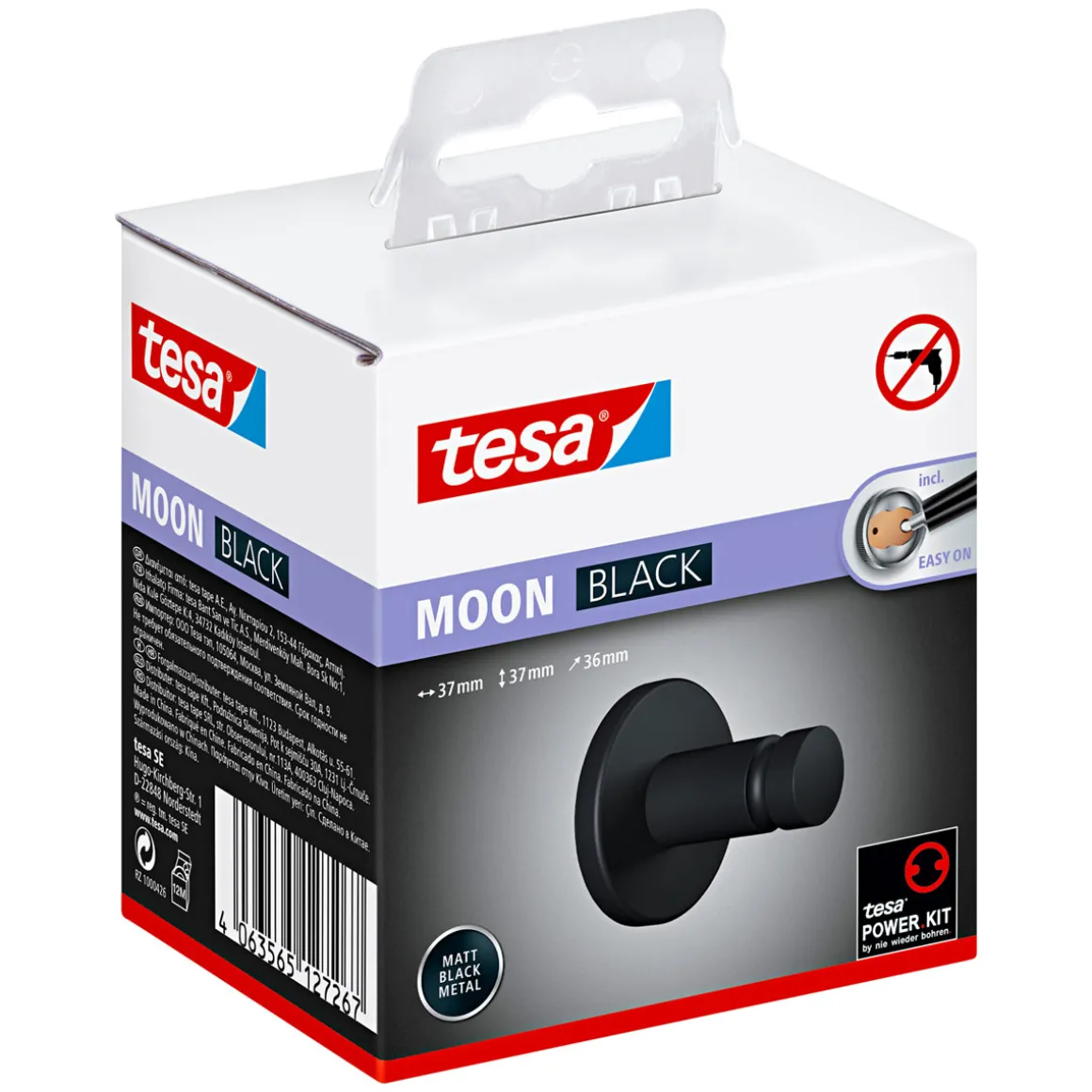Produktdetails des Tesa Handtuchhakens Moon mattschwarz