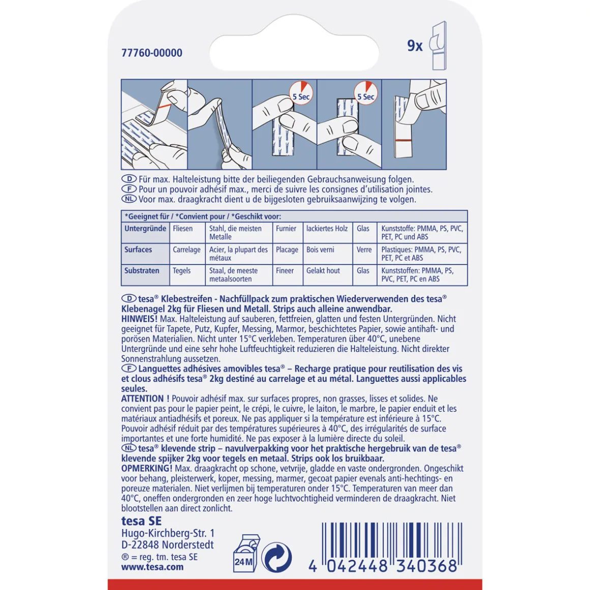Mit den Tesa Klebestreifen für Fliesen können Sie Gegenstände bis zu 2 kg ganz einfach an der Wand befestigen, ohne dabei Löcher bohren oder Nägel einschlagen zu müssen. Die Klebestreifen sind zudem spurlos ablösbar und wiederverwendbar, was sie zur perfekten Lösung für Mieter oder temporäre Dekorationen macht.