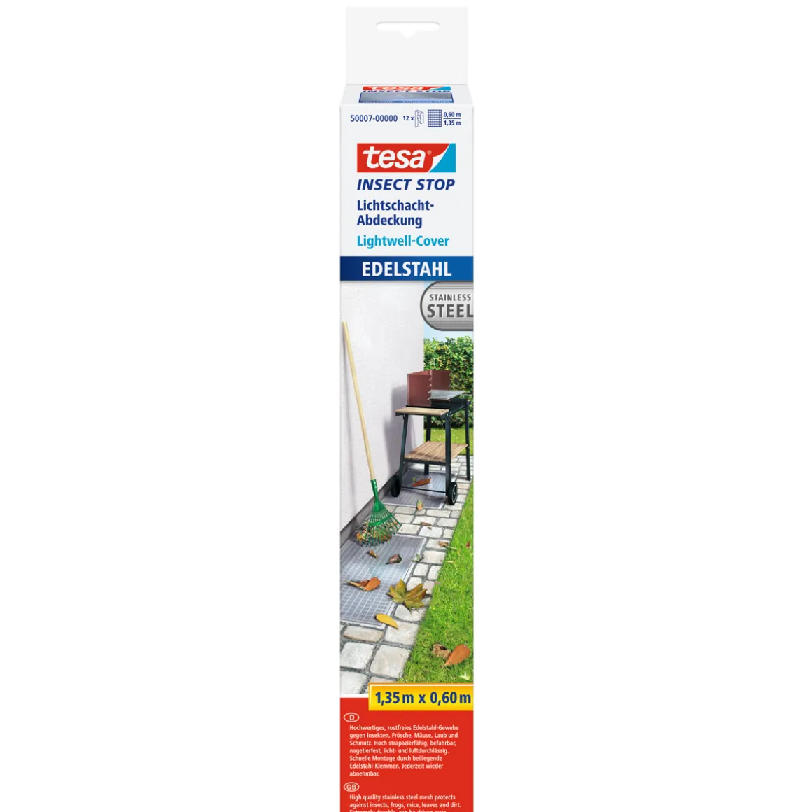 Tesa Lichtschachtgitter Edelstahl 1,35 x 0,60m – Robustes Fliegengitter für den Außenbereich