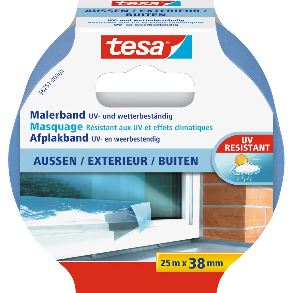 Tesa Maler Krepp AUSSEN 25 m x 38 mm – Das perfekte Abdeckband für Malerarbeiten im Freien