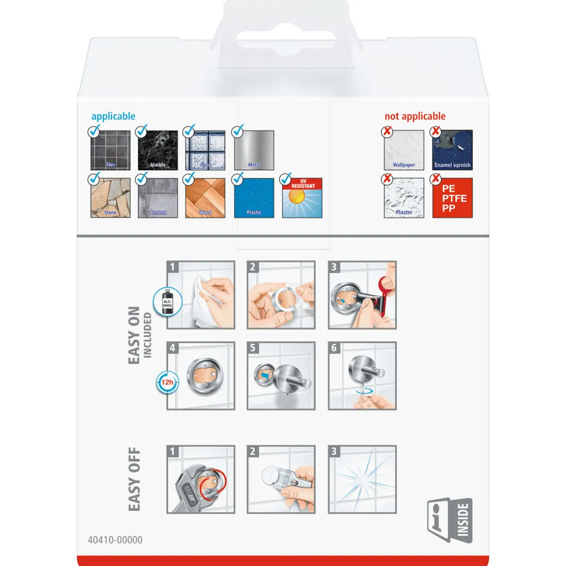 - Wieder ablösbare Klebelösung hinterlässt keine Rückstände auf glatten Oberflächen wie Fliesen oder Glas