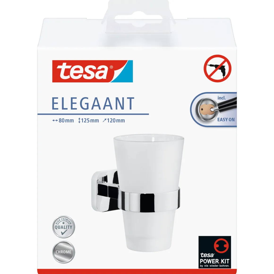 Der Tesa Mundglashalter Elegaant ist die ideale Wahl für alleKunden, die Wert auf Qualität und Ästhetik legen. Wenn Sie nach einer praktischen Lösung suchen, um Ihre Zahnbürsten ordentlich aufzubewahren und dabei Ihr Badezimmer optisch aufzuwerten, dann sind Sie hier genau richtig! Dank der innovativen Klebetechnologie können Sie den Halter ganz einfach montieren – ohne Bohrer oder Werkzeug. Besonders praktisch: Er lässt sich rückstandslos entfernen! Perfekt also auch für Mietwohnungen. Das elegante Design aus verchromtem Metall kombiniert mit dem Milchglas-Zahnputzbecher macht ihn zu einem echten Highlight in jedem Bad.
