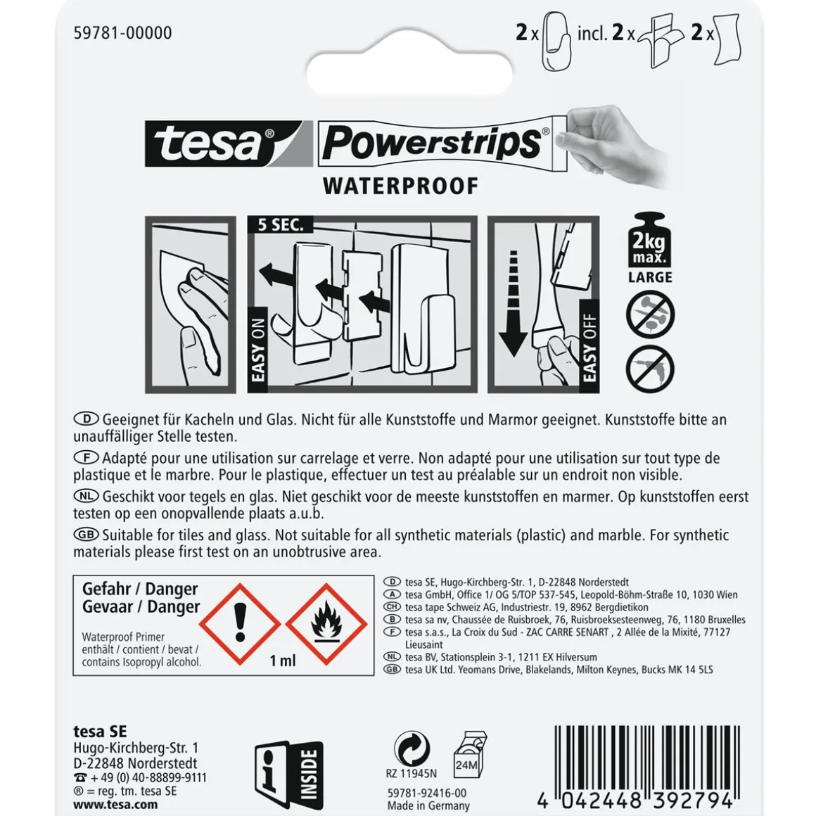 Tesa Powerstrips Waterproof Haken Large – Starker Halt in nassen Bereichen