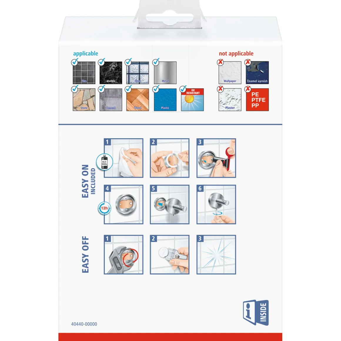 - Hält zuverlässig auf verschiedenen Oberflächen wie Fliesen, Naturstein, Marmor oder Holz