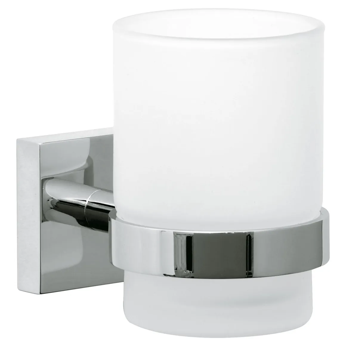 Der Tesa Zahnputzbecher Ekkro chromfarben ist ein zeitlos designter Mundglashalter, der ohne Bohren befestigt werden kann. Er besteht aus verchromtem Metall und einem satinierten Glasbehälter. Der Becher ist spritzwassergeschützt und wetterbeständig.
