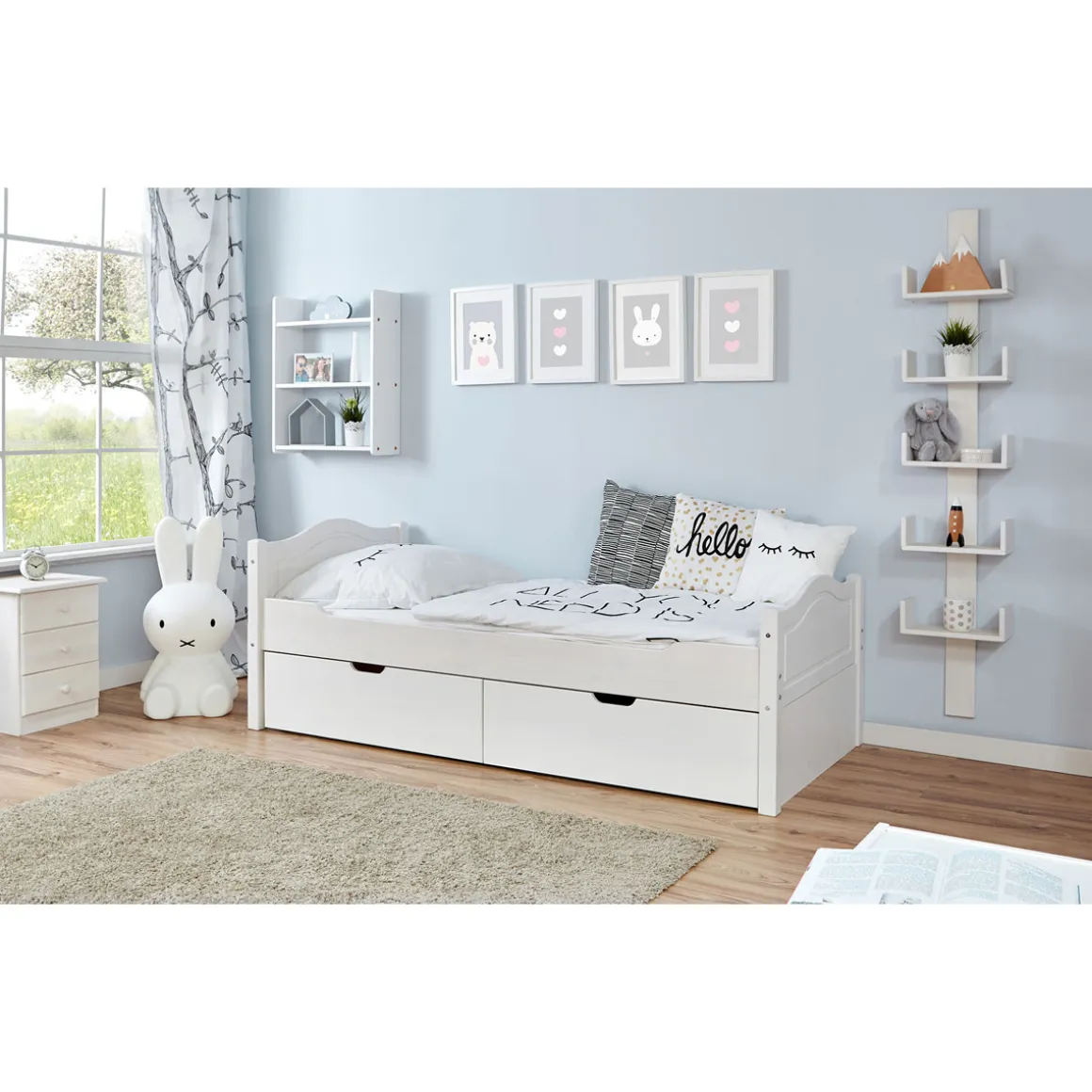 Ticaa Einzelbett Leni Kiefer weiß Var 4 – mit 2er Schubkästen