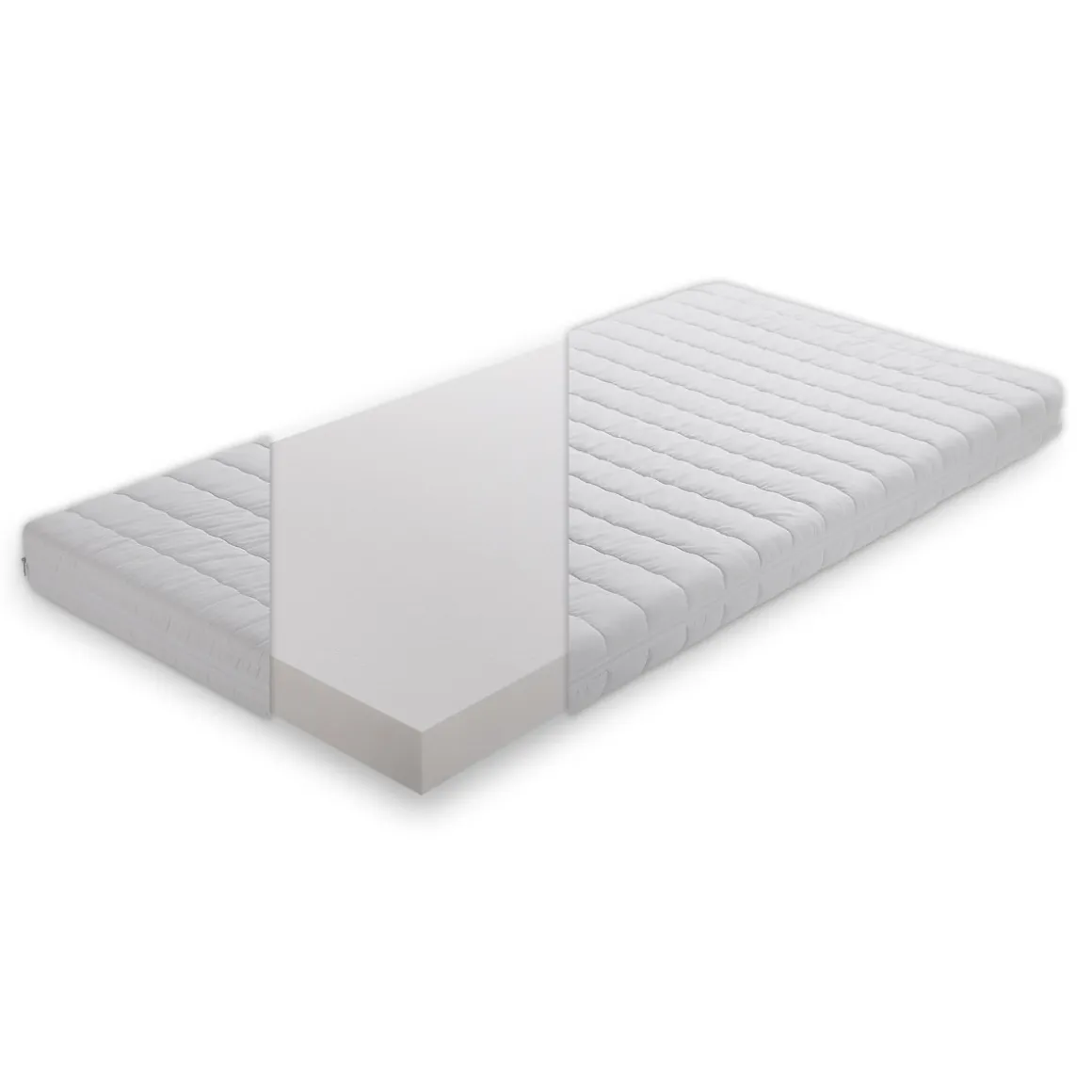 | Material: | Matratzen-Aufbau: Comfortschaum, Bezugsstoff: Schadstoffgeprüfte Textilien , Microfaserbezug weiss gesteppt, 100% Polyester |
