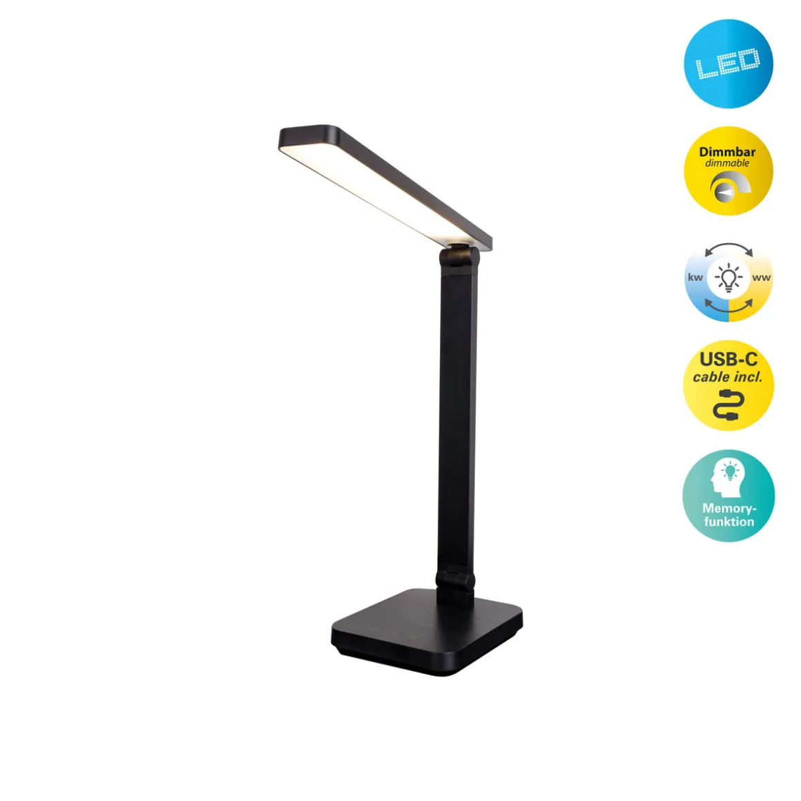 Die MOVER Tischleuchte aus unserer Kollektion ist ein echter Hingucker für jeden Wohnraum. Sie zeichnen sich durch ihre Leichtigkeit und Tragbarkeit aus, was einen problemlosen Standortwechsel ermöglicht, um verschiedene Beleuchtungsbedürfnisse zu erfüllen. Sie spenden sowohl zielgerichtetes Licht für Aktivitäten wie Lesen, Arbeiten oder Basteln, als auch stimmungsvolles Licht, um gezielt bestimmte Bereiche im Raum zu betonen, ohne den kompletten Raum auszuleuchten. Darüber hinaus können sie als dekorative Elemente dienen, die den Einrichtungsstil ergänzen oder besondere Akzente setzen. Diese Leuchte im Modern Style überzeugt mit ihrer schlanken Optik und ihrer kantigen Gestaltung – ideal für alle, die das Besondere lieben. Mit ihrer Gestaltung aus Metall und Kunststoff in Schwarz ist diese Leuchte ein besonderer Hingucker. Die Maße der Tischleuchte belaufen sich auf 14,8 cm in der Länge, 14,8 cm in der Breite und 38 cm in der Höhe. Diese Tischleuchte verfügt über einen praktischen Berührungssensor und einen USB-Anschluss Typ C. Mit einer Tischleuchte, ausgestattet mit 1 LED auf 1 LED Platine bringen Sie Licht in jeden Raum. Die Beleuchtung ist vollständig in das Design integriert. Dieses Produkt ist mit der Klasse 3 und der Schutzart IP20 für den Innenraum geeignet. Mit einer Leistung von 6 Watt und einer Lichttemperatur von 6300 Kelvin sorgt diese Lechte für eine angenehme Beleuchtung. Diese Tischleuchte ist mit einer CCT-Technologie ausgestattet, die es ermöglicht, die Lichtfarbe und -intensität zu regulieren. Diese Funktion ermöglicht es, den Raum mit dem perfekten Licht zu beleuchten.