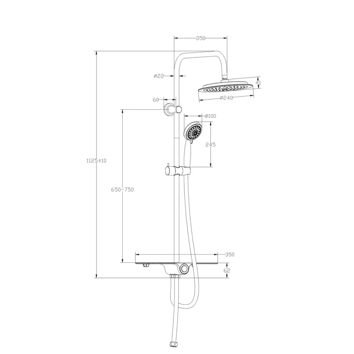 Produktdetails des Überkopfbrausesets Aquastar