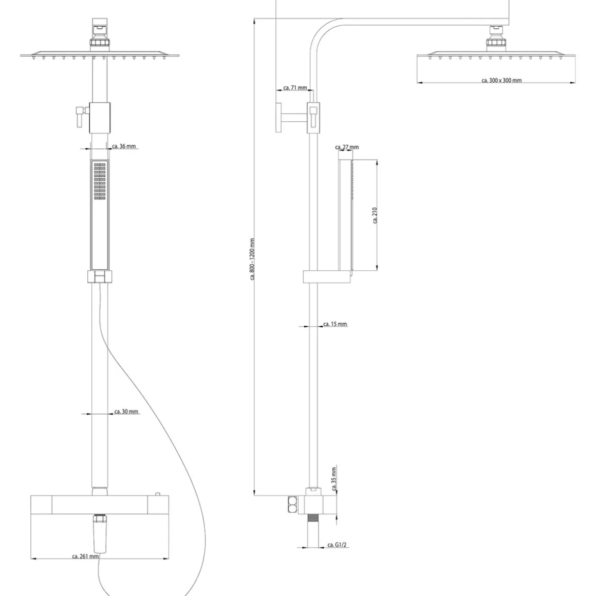 - Form Kopfbrause: eckig, Format Kopfbrause: 30 x 30 cm