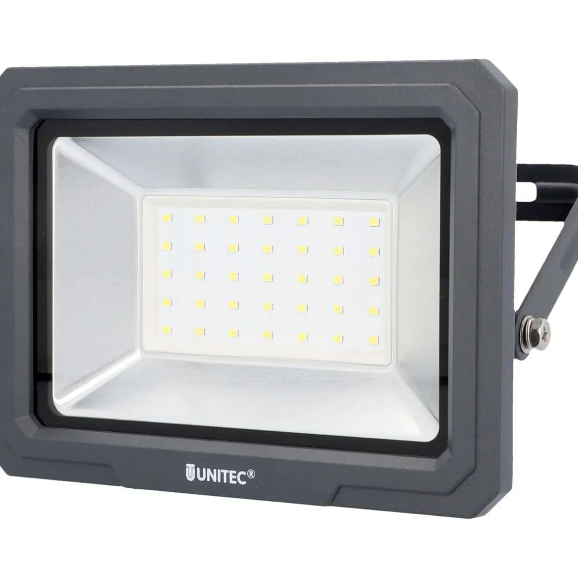 Setzen Sie Ihre Außenanlage ins rechte Licht mit dem Unitec LED Wandstrahler in Anthrazit. Mit einer Leistung von 50 Watt und einer Lichtleistung von 4000 Lumen sorgt er für eine helle Ausleuchtung. Das robuste Aluminium-Gestell und der Schutzgrad IP65 machen ihn wetterfest und langlebig.