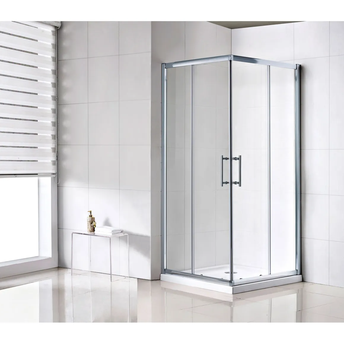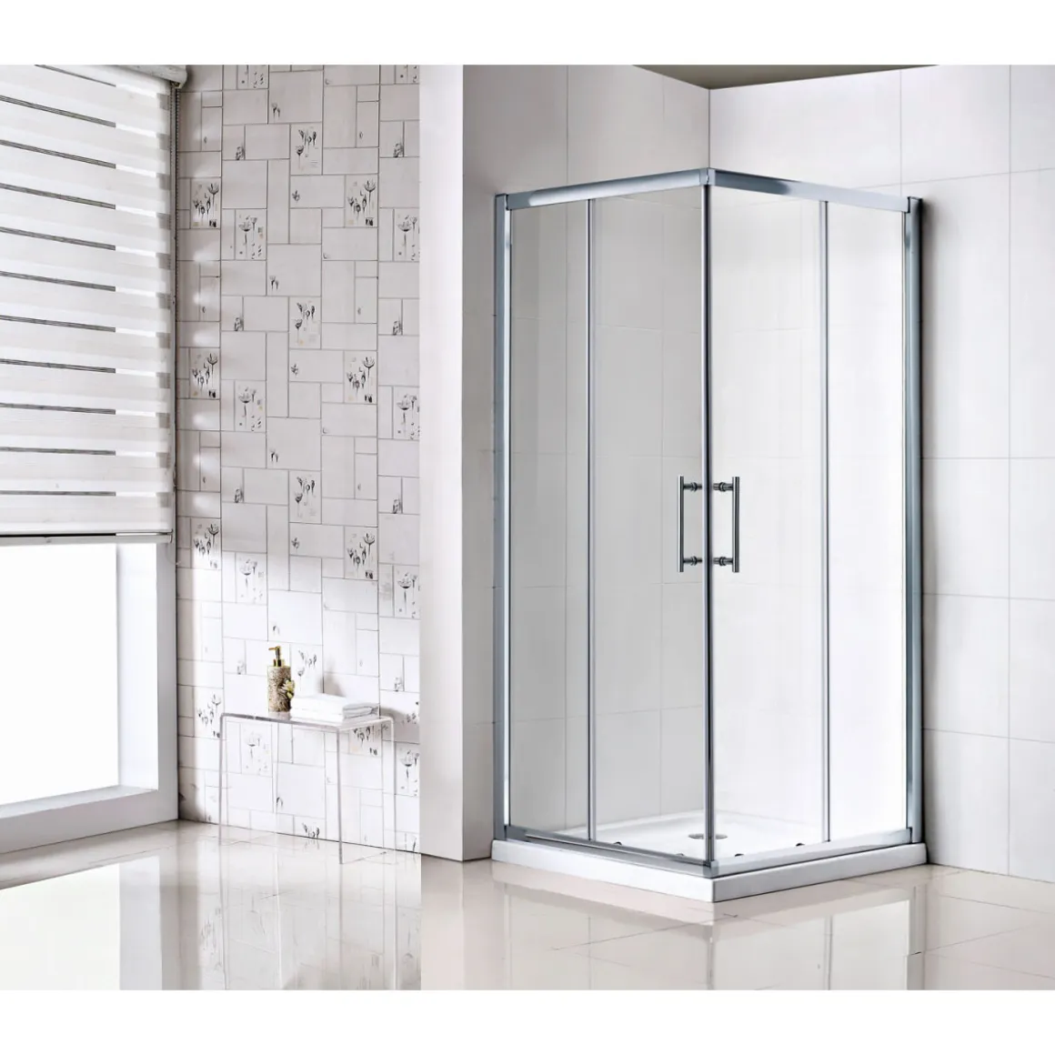 Diese Eckdusche ist perfekt fürKunden, die eine moderne und sichere Lösung für ihre Badezimmer suchen. Mit ihrem klaren Design und dem Hebe-/Senkmechanismus bietet sie ein angenehmes Duschvergnügen.