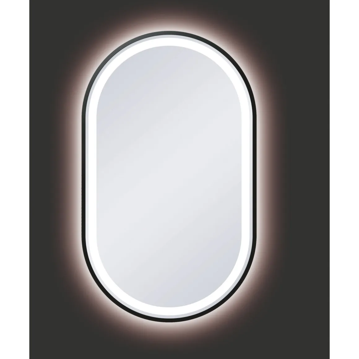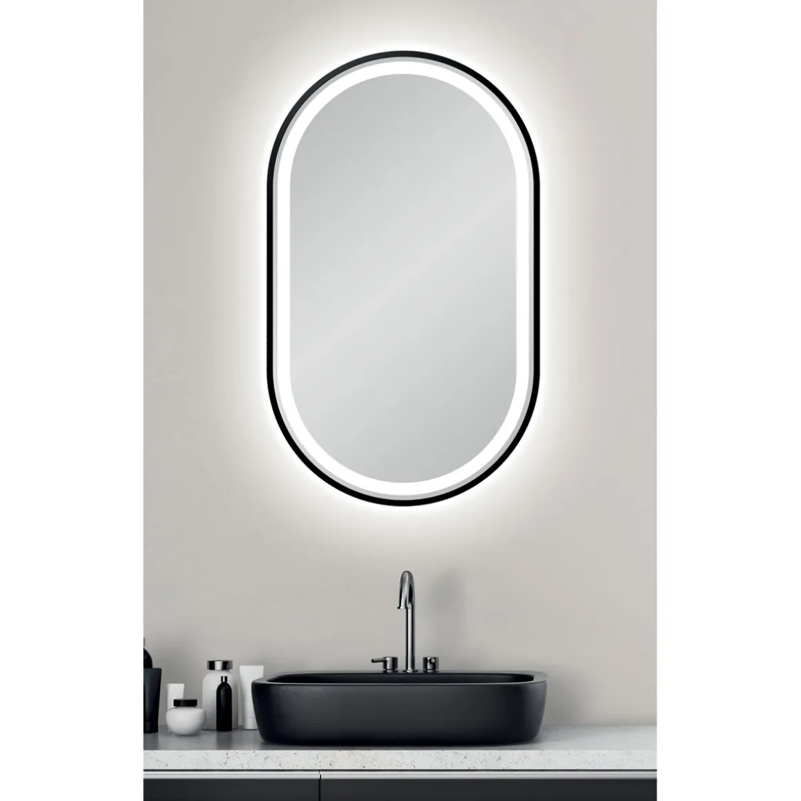 Der elegante und schlichte Badspiegel „Lucien“ überzeugt in jedem Badezimmer mit seinem hochwertigen Aluminiemrahmen in matt schwarz und einem hinterleuchteten, umlaufenden Lichtausschnitt mit Raumlichteffekt.