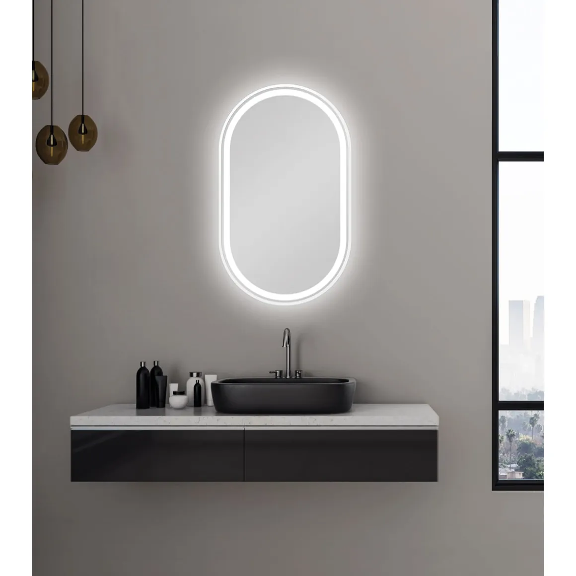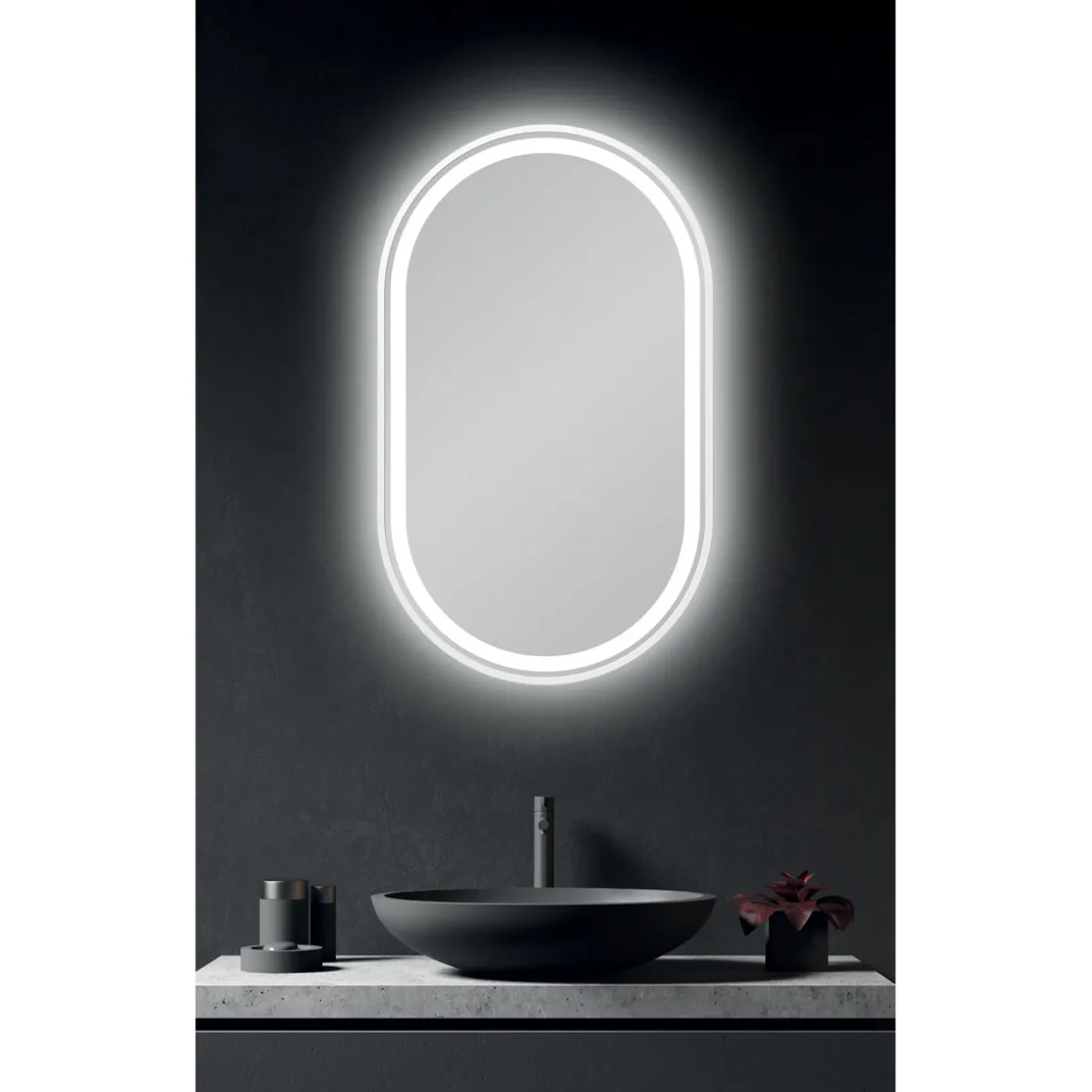 Der elegante und schlichte Badspiegel „Lucien“ überzeugt in jedem Badezimmer mit seinem hochwertigen Aluminiemrahmen in matt weiß und einem hinterleuchteten, umlaufenden Lichtausschnitt mit Raumlichteffekt.
