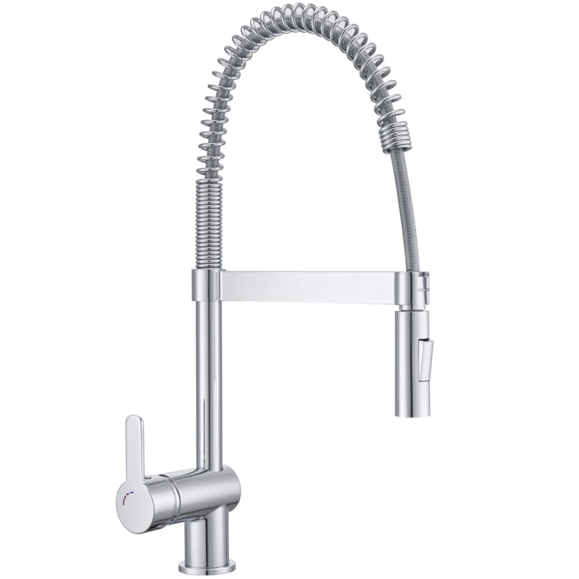 Spültischarmatur mit Spiralfeder in chrom glänzend.