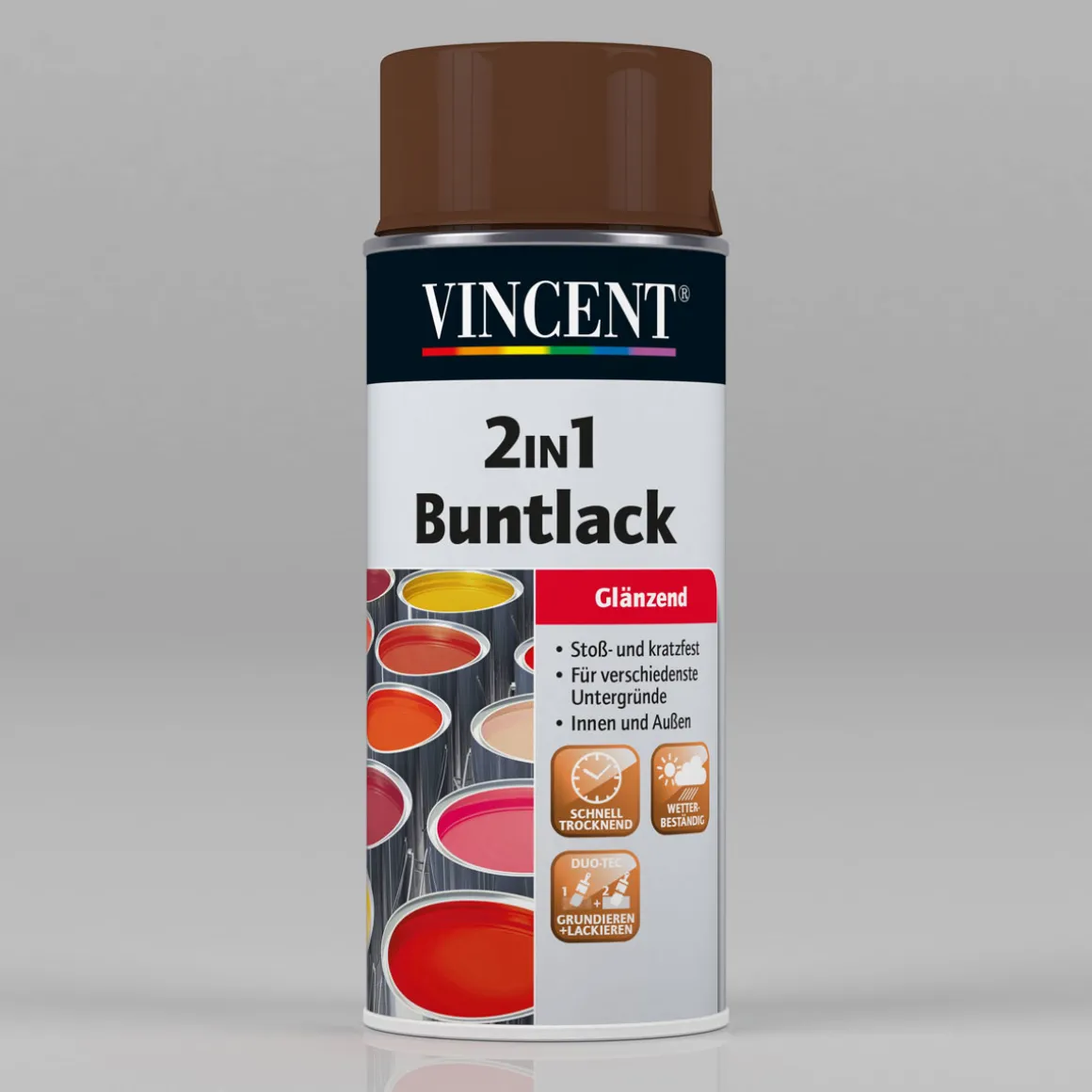Vincent Vincent 2in1 Buntlack Spray Nussbraun glänzend – Der perfekte Schutz für Innen- und Außenbereiche