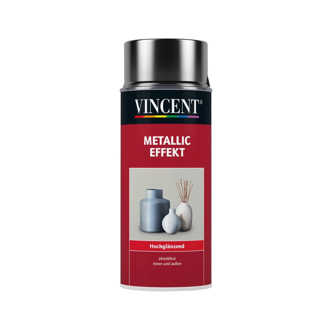 Verleihen Sie Ihren Gegenständen einen glänzenden Metallic-Look mit dem Vincent Metallic Effekt Spray in Silber. Egal ob drinnen oder draußen – dieser Hochglanzlack sorgt für ein edles Finish.