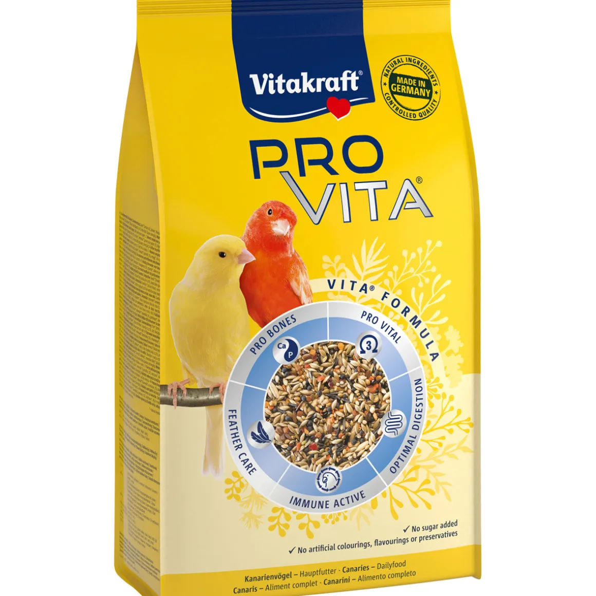 Pro Vita® ist ein ausgewogenes, tierärztlich entwickeltes Hauptfutter für Kanarienvögel – mit dem Plus für ein gesundes Vogelleben! Denn die funktionale Mischung enthält neben vielen schmackhaften Zutaten die einzigartige VITA® FORMULA, eine von unseren Vogelexperten speziell entwickelte Kombination aus hochwertigen Omega-3-Fettsäuren und einer optimalen Balance an essenziellen Aminosäuren. Damit sorgt Pro Vita® für eine rundum perfekte Versorgung der Tiere – für ein gesundes Herz, mehr Aktivität und ein verbessertes Wohlbefinden.