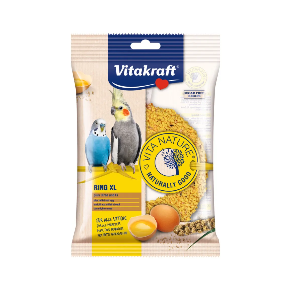 Der Knuspersnack auf Naturholz in attraktiver Ringform, verfeinert mit wertvollem Ei, lädt zum herzhaften Picken ein und sorgt für eine artgerechte Beschäftigung.