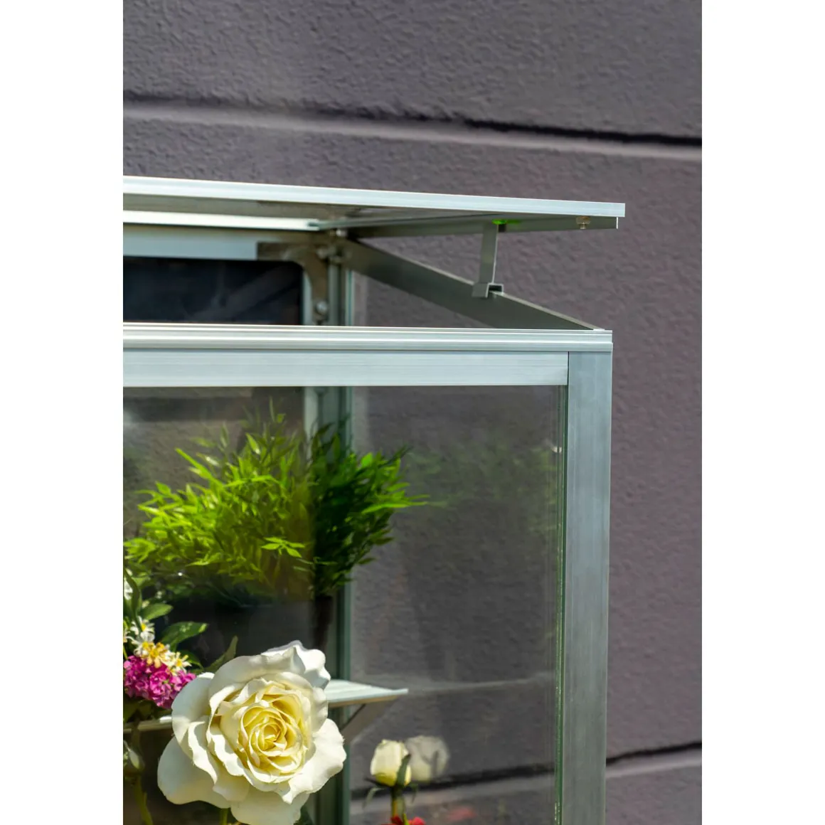 Mit dem Vitavia Balkongewächshaus 350 können Sie auch ohne großen Garten Ihre eigenen Pflanzen anbauen. Die stabile Aluminiumkonstruktion mit Einscheibensicherheitsglas hält Wind und Wetter stand und das Stahlfundament sorgt für eine einfache Montage. Dank des Regalbodens haben Sie genug Platz für verschiedene Pflanzenarten und durch das aufstellbare Dachfenster wird eine optimale Belüftung gewährleistet. Bestellen Sie jetzt das Vitavia Balkongewächshaus 350 im Online-Shop!