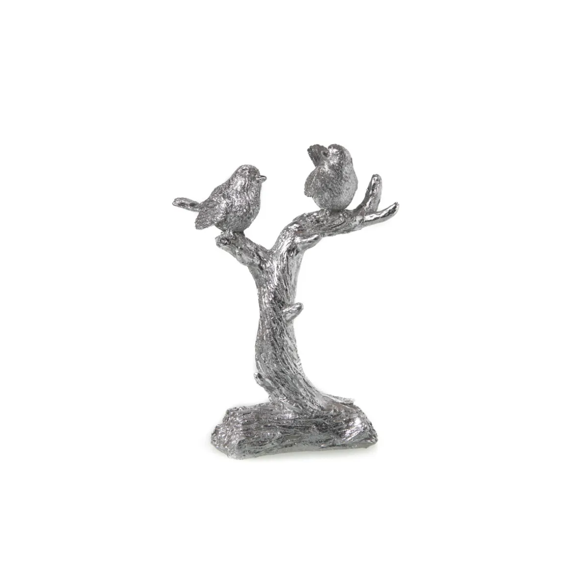 Vogel auf Ast 13 x 5,5 x 18,5 cm silber – Dekorative Figur für Vogelliebhaber