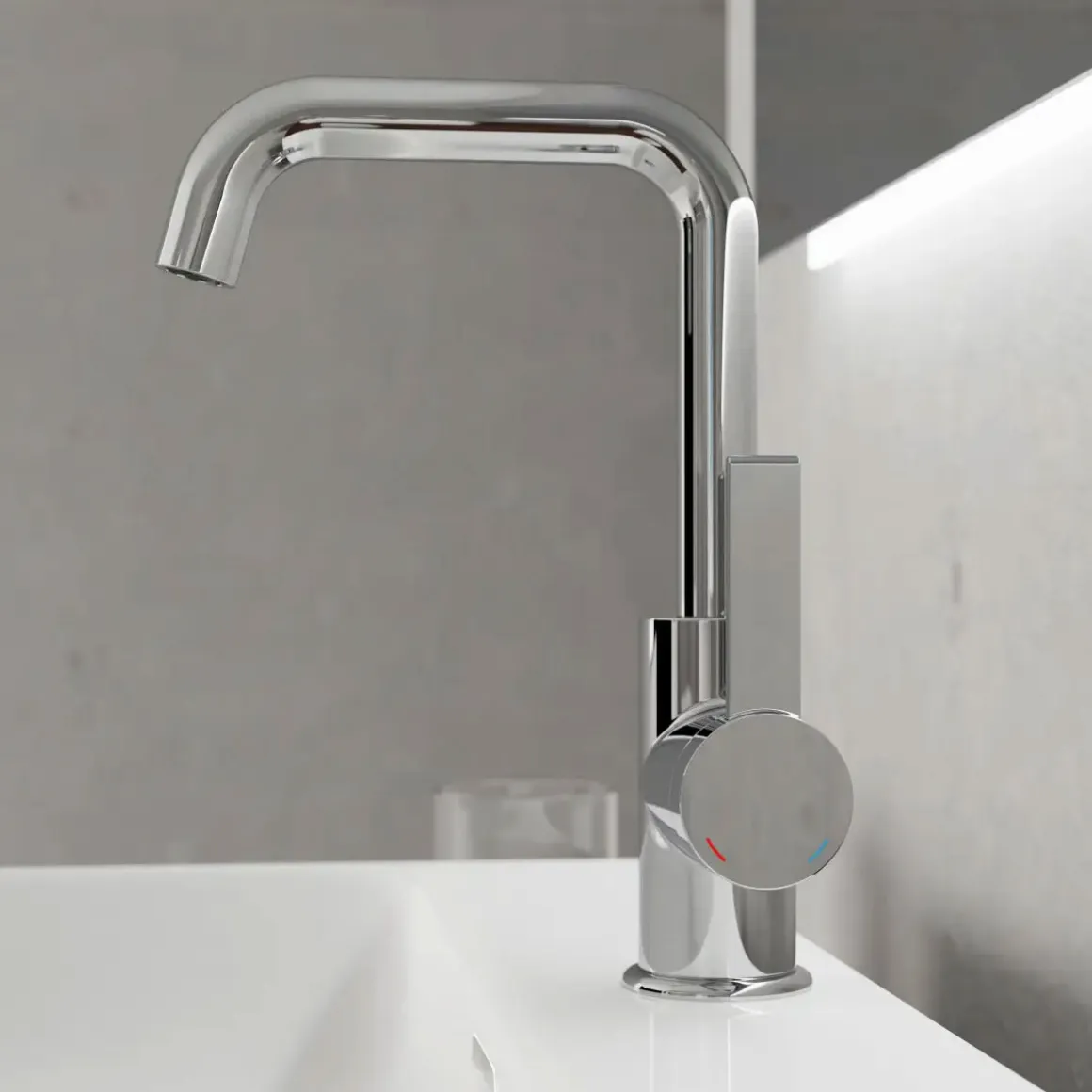 Die Waschtischarmatur Los Angeles in edlem Chrom vereint modernes Design mit innovativer Technik und hoher Funktionalität. Besonders hervorzuheben sind ihre USPs: