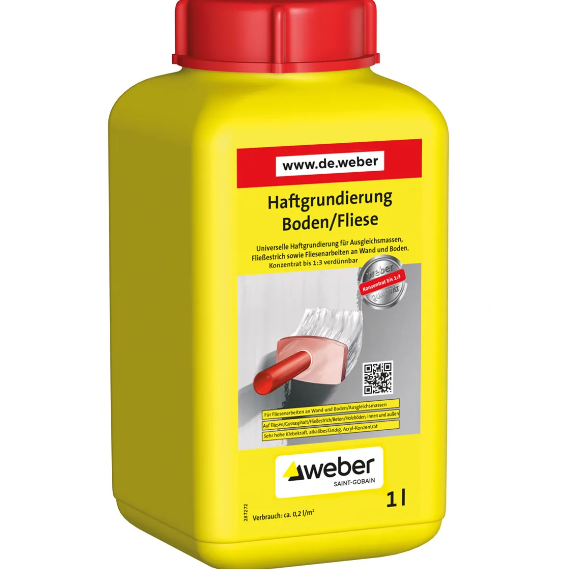 Verbrauch: 0,2 – 0,4 l/m² fertige Mischung, je nach Saugfähigkeit und Beschaffenheit des Untergrundes, bei stark saugenden Untergründen ist ein zweiter Arbeitsgang erforderlich