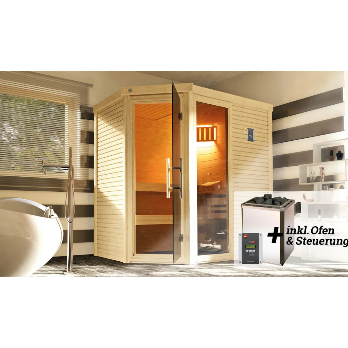Weka Design-Saunahaus Kuopio Sparset 9,0 kW OS inkl. analoger Steuerung