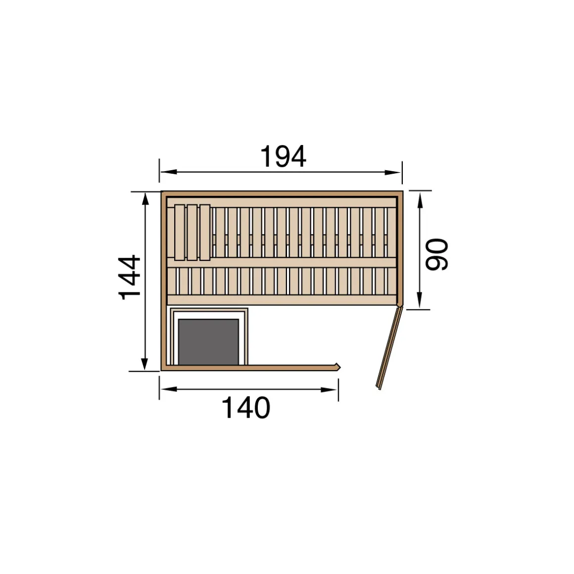 - Außenmaße: 194 x 177 x 199 cm (B x T x H), Innenmaße: 179 x 162 x 192 cm (B x T x H)