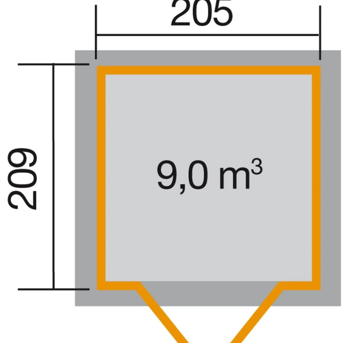 - – Außenmaße (BxLxH=Trauf) (cm): 237x231x252