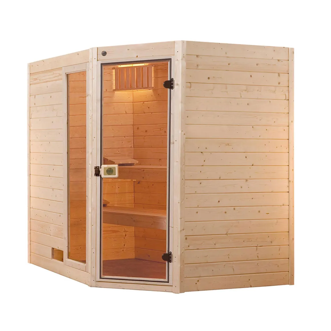 - Eckeinstieg ermöglicht einen bequemen Zugang zur Sauna