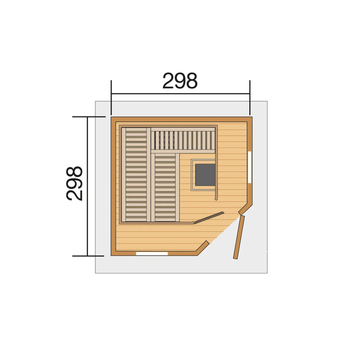 - Eckeinstieg ermöglicht einen einfachen Zugang zur Sauna