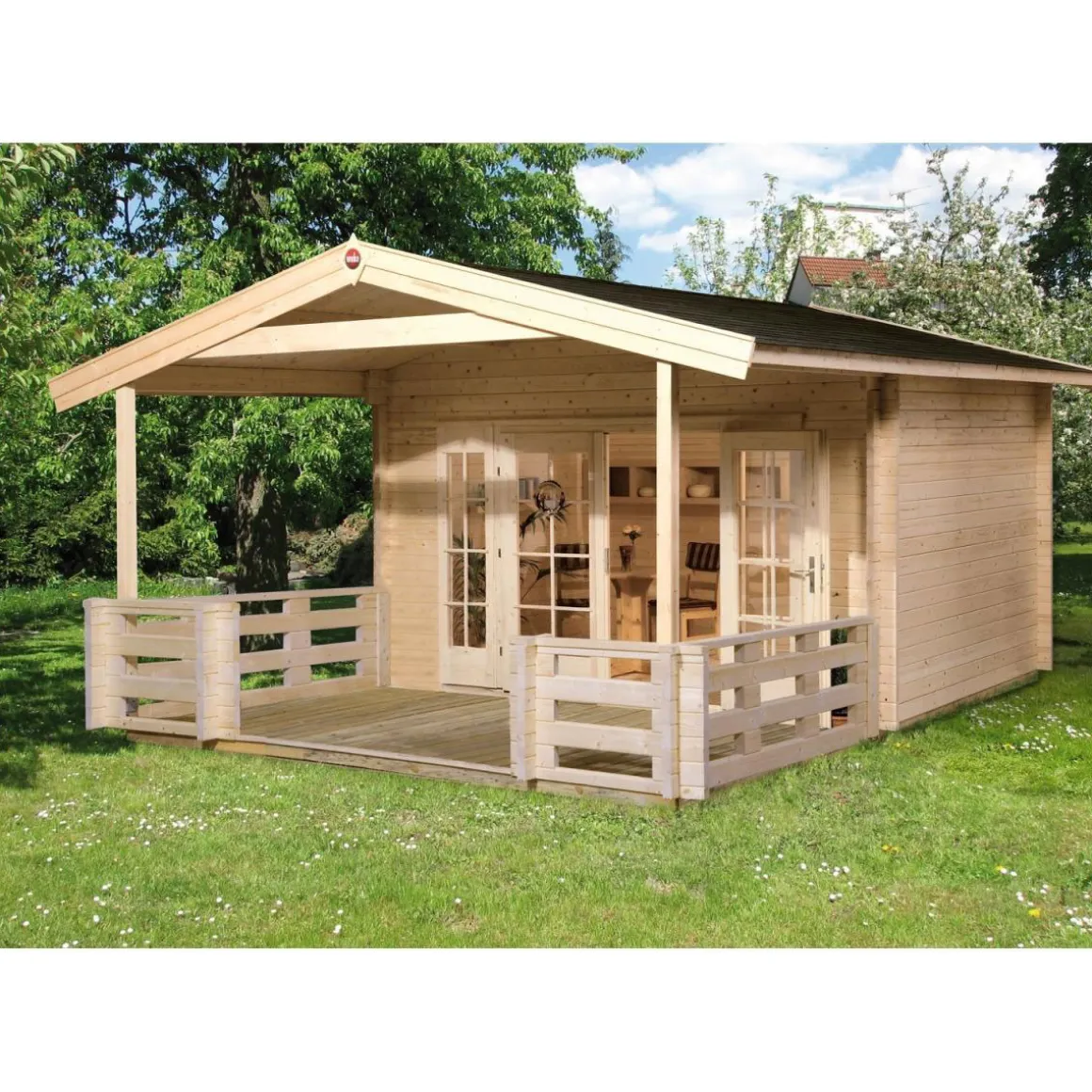 - Stabile Blockbohlenbauweise aus europäischer Fichte