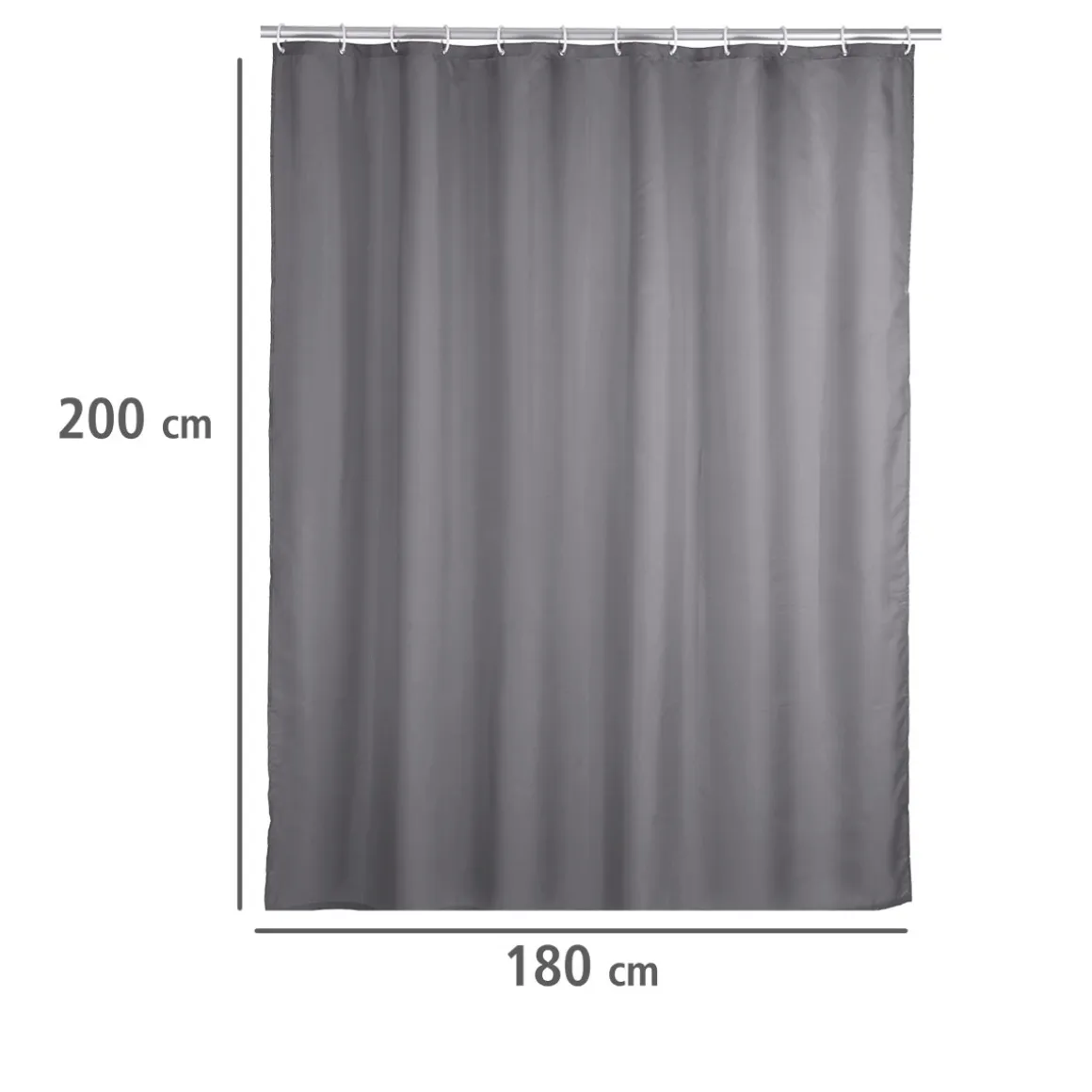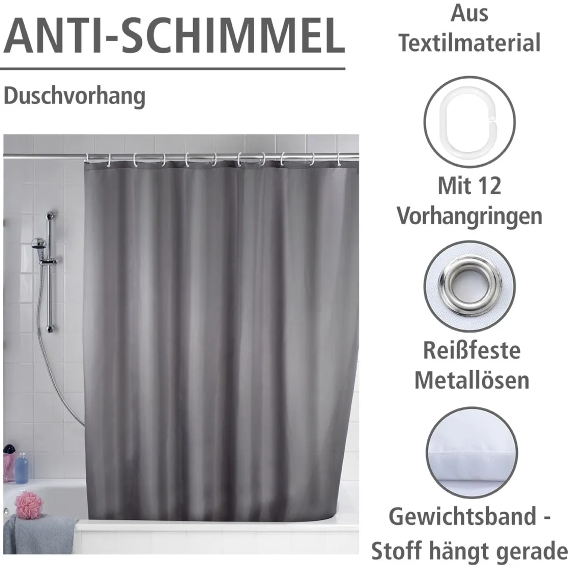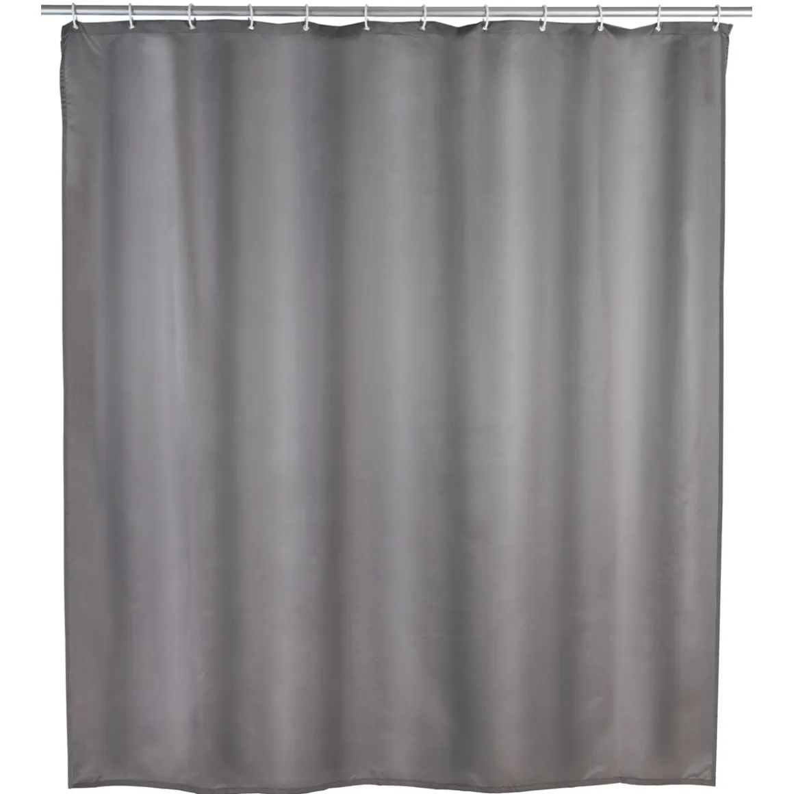 Wenko Anti-Schimmel Duschvorhang Uni Grey Textil Polyester 180 x 200 cm